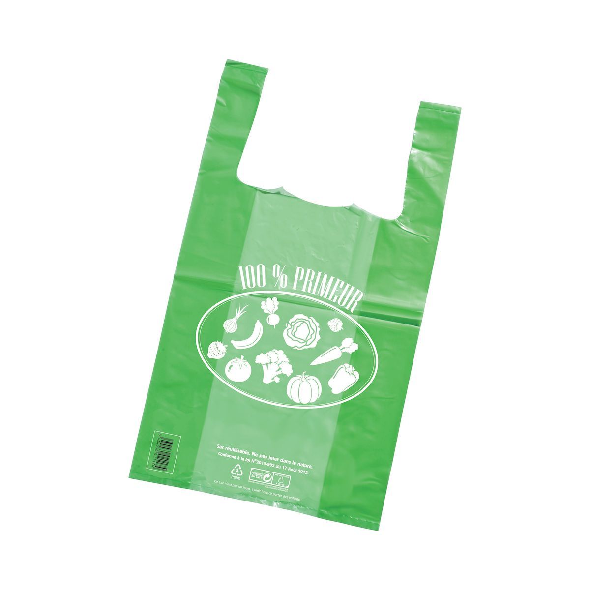 Sacs en plastique fabriqués à partir de matière recyclée, réutilisables, et recyclables en fin de vie. Existent en versions neutres ou avec décor.
